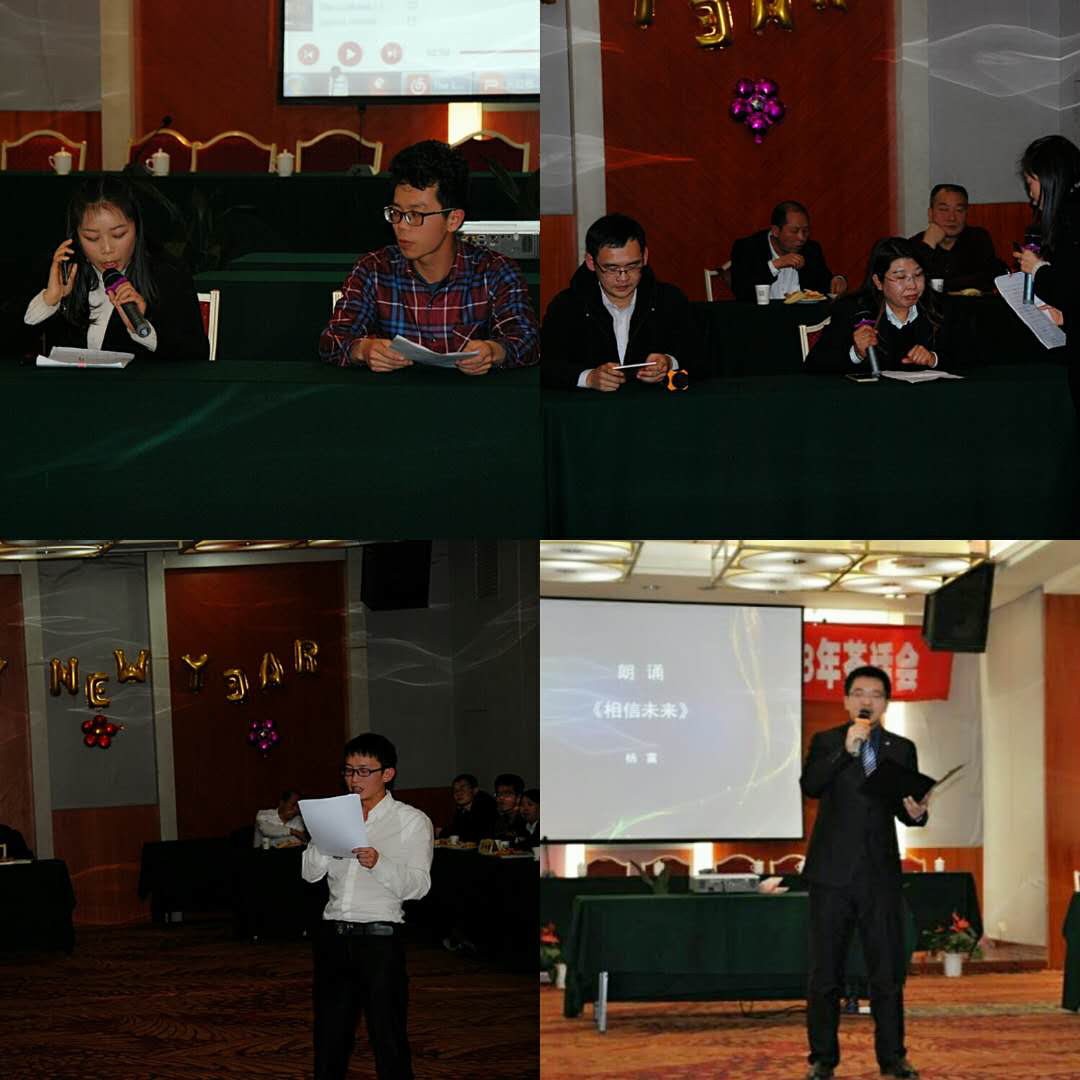 下午公司舉行了聯(lián)歡會,不僅有余音繞梁的女聲獨唱、高亢嘹亮的男生獨唱,而且還有引人入勝的情景劇、感人至深的朗誦等,年會過程中還穿插了有趣的團(tuán)隊游戲,大家用心投入的表演無不展現(xiàn)著治水人創(chuàng)新、務(wù)實、自信的風(fēng)采以及西安水建員工的綜合素養(yǎng)。聯(lián)歡會不僅給大家?guī)砹藲g聲笑語,同時也讓同事之間彼此的心更加貼近。公司領(lǐng)導(dǎo)與員工親情互動,歌聲、掌聲、歡呼聲在會場上此起彼伏,整場聯(lián)歡會高潮迭起,展現(xiàn)出西安水建集團(tuán)這個大家庭的歡樂和諧。